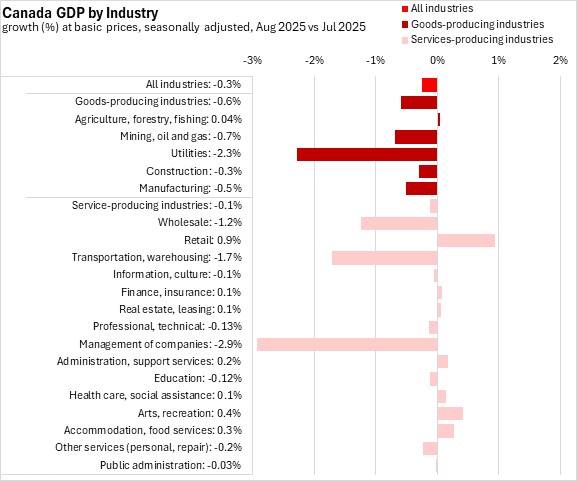 October 31, 2025CANADA GDP BY INDUSTRY, AUGUST 2025 Month-over-month (August vs July 2025)