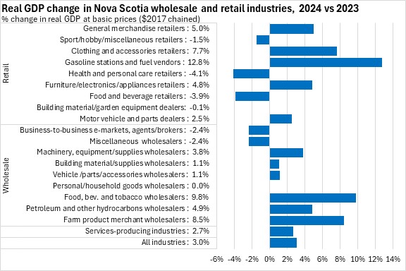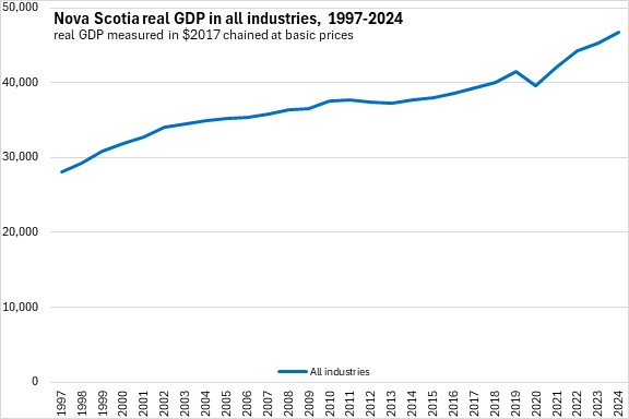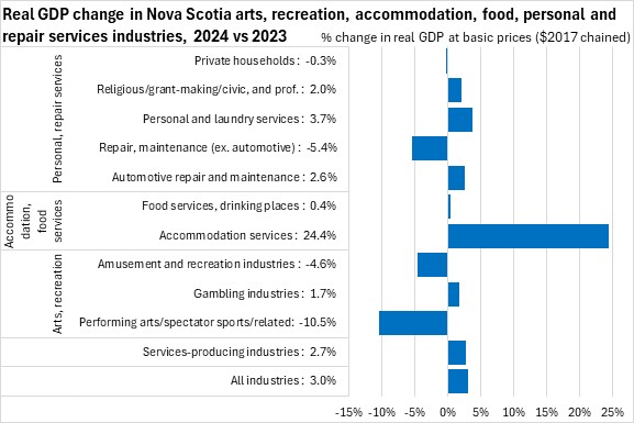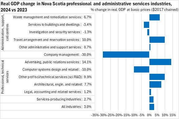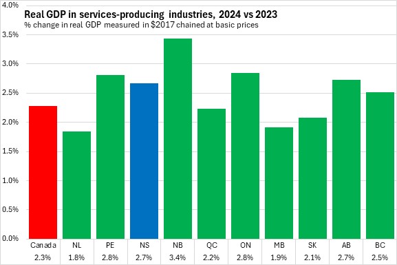 Nova Scotia's real GDP from services-producing industries was up 2.7% in 2024, faster than the national pace of 2.3%. Real GDP from services-producing industries was up for every province, led by New Brunswick. Newfoundland and Labrador reported the slowest real GDP growth from services-producing industries.