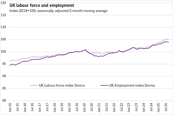 The UK unemployment rate for the three-month period July to September 2025 was 5.0%, 0.3 percentage point higher than the preceding 3 month period (April-June 2025). From July to September 2024, the UK unemployment rate averaged 4.3%.