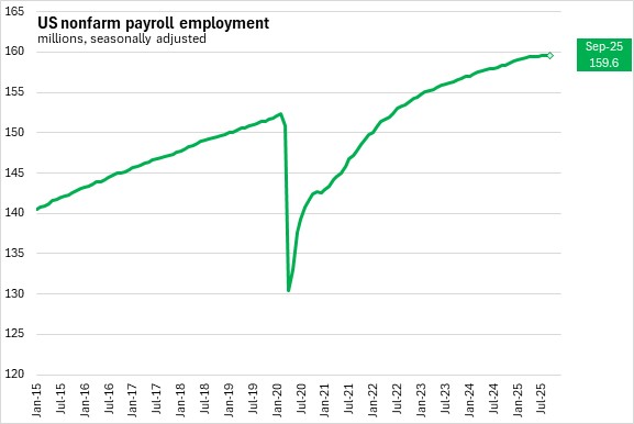 The increase of 119,000 in US nonfarm payroll employment follows the revised decline of 4,000 reported for August 2025.