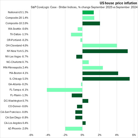 November 25, 2025US S&P CORELOGIC CASE-SHILLER HOME PRICE INDICES, SEPTEMBER 2025 Month-over-month (September 2025 vs August 2025, seasonally adjusted)