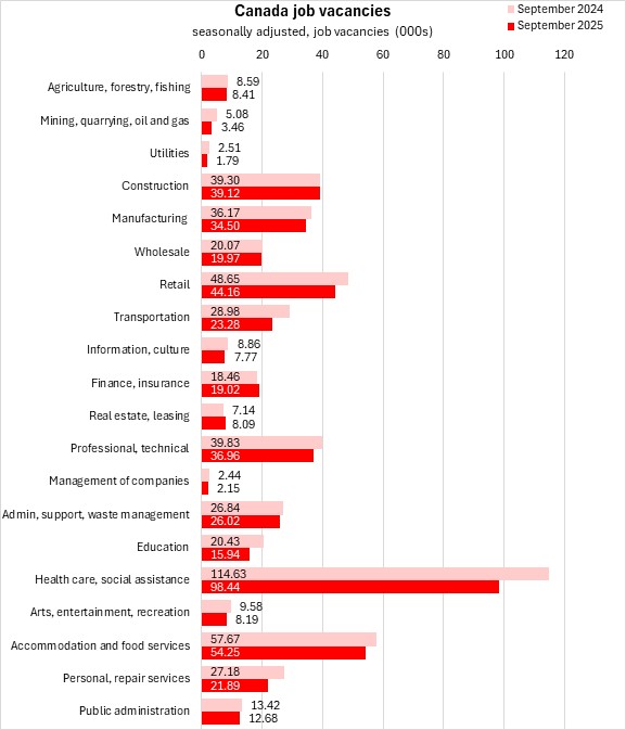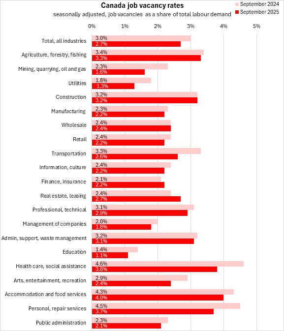 Canada job vacancy rate and job vacancies by industry, September 2025