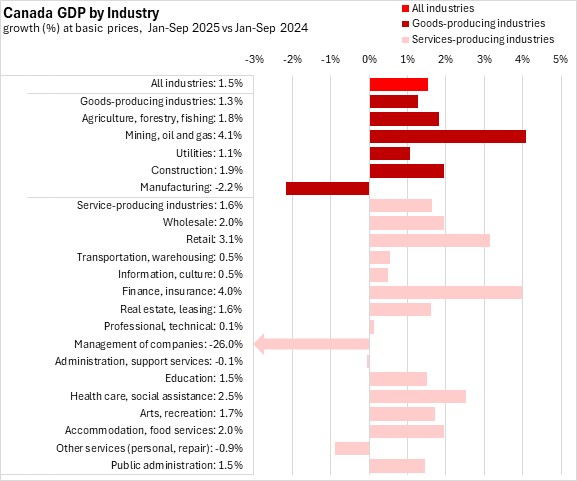 The Canadian economy was 1.5% larger in January-September 2025 when compared to the same months in 2024.