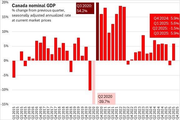 Nominal GDP grew at a seasonally adjusted annualized rate of 5.9% in Q3 2025, following a 1.5% contraction in Q2 2025.