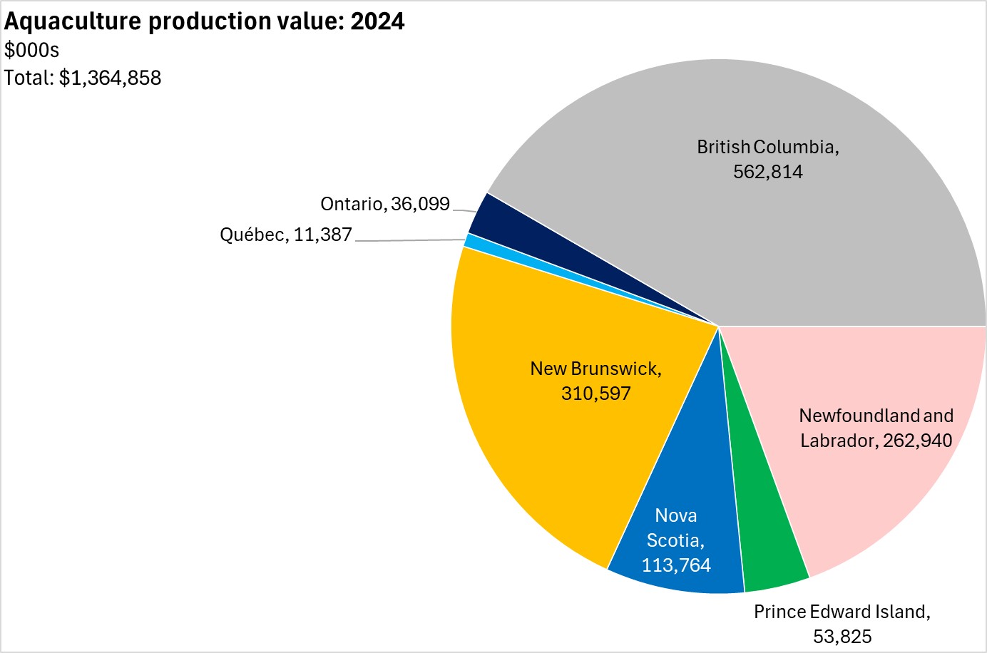 December 01, 2025AQUACULTURE, 2024 Canada's aquaculture industry produced 160,318 tonnes of finfish and shellfish products in 2024 (including restocking), with a value of $1.36 billion.