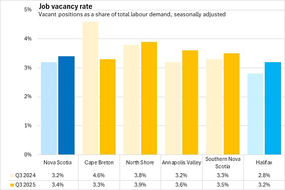 Within Nova Scotia, Cape Breton was the only region to report a lower job vacancy rate from Q3 2024 to Q3 2025.