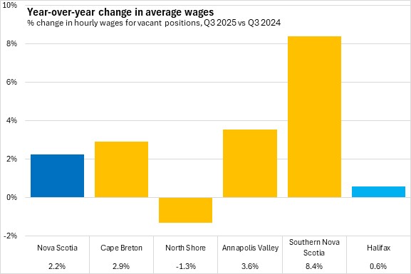 Southern Nova Scotia reported the fastest year-over-year growth in average wages for vacant positions while the North Shore region reported the only decline.