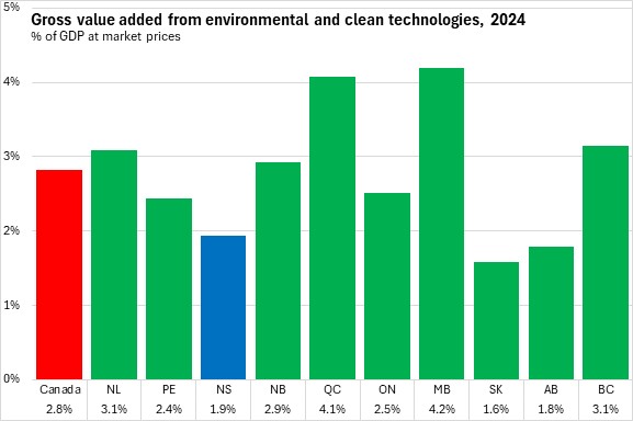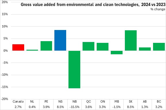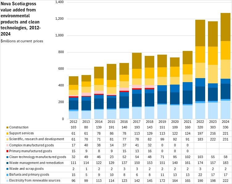 Nova Scotia's gross value added from ECT industries expanded in 2024. Nova Scotia's main contributors to ECT value added were: construction, support services, scientific research/development, waste management/remediation and renewable electricity.