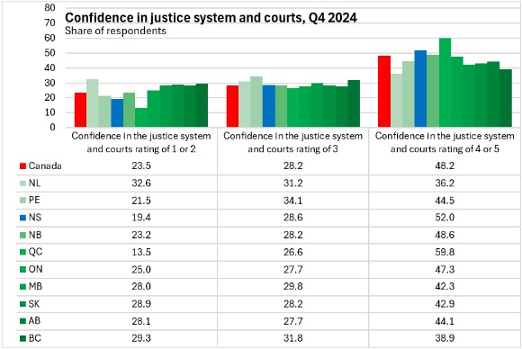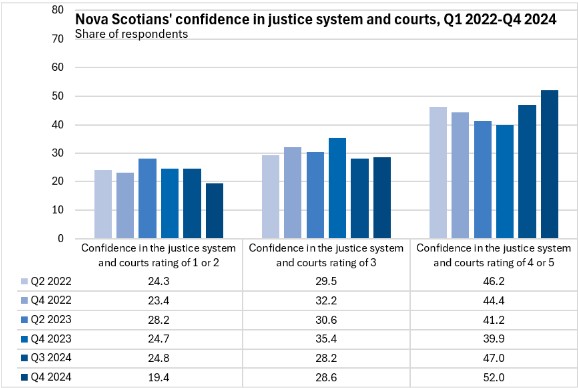 Confidence in the justice system and courts increased in Nova Scotia in Q4 2024.