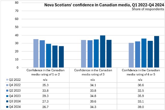 Although lower than for other institutions like police, justice and the courts, Nova Scotians' confidence in Canadian media has been rising.