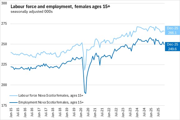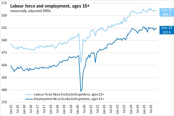 Nova Scotia’s labour force fell by 700 (-0.1%) to 560,300 in December 2025.