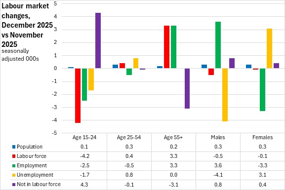 Ages 15+ (December 2025 vs November 2025, seasonally adjusted)