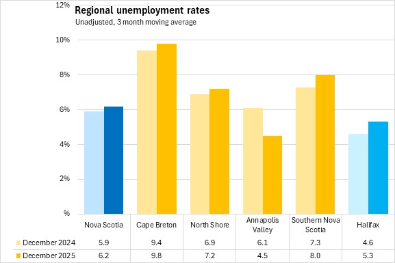 Unemployment rates rose in all regions except the Annapolis Valley compared to December 2024.
