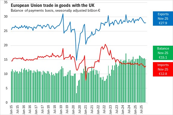 January 15, 2026EU AND EURO AREA TRADE BALANCE IN GOODS, NOVEMBER 2025 Month-over-month (November 2025 vs October 2025, seasonally adjusted)