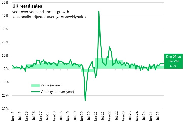 UK retail sales values were up 4.2% while retail sales volumes rose 2.5%.