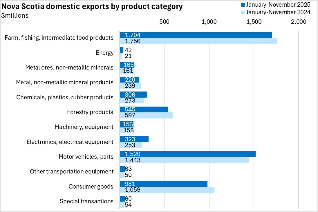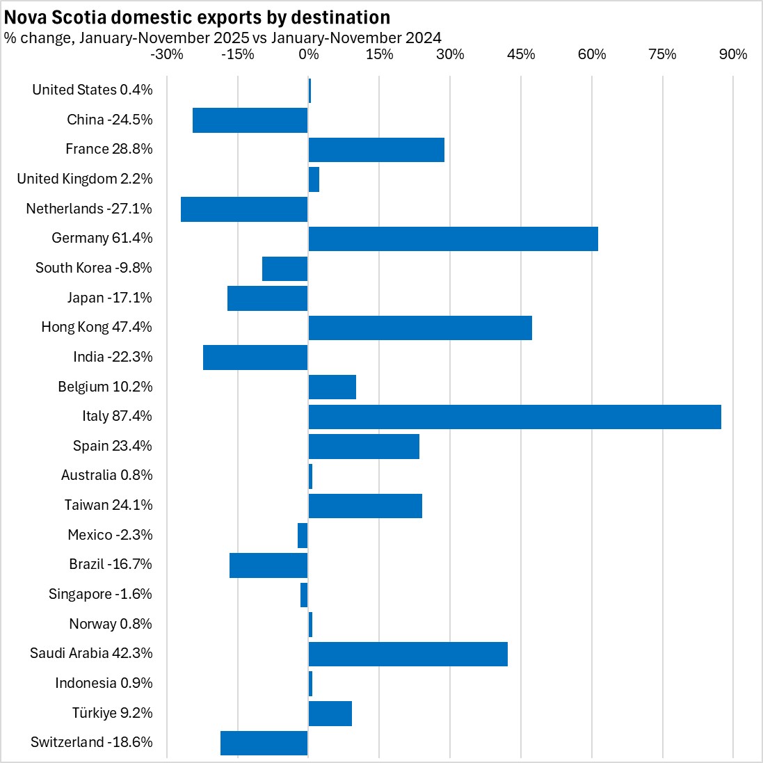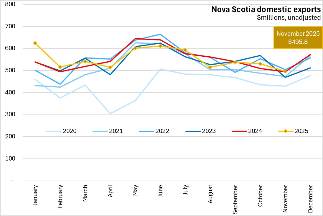 January 29, 2026NOVA SCOTIA INTERNATIONAL GOODS EXPORTS, NOVEMBER 2025 Year-over-year (November 2025 vs November 2024, domestic exports on a customs-basis, unadjusted)