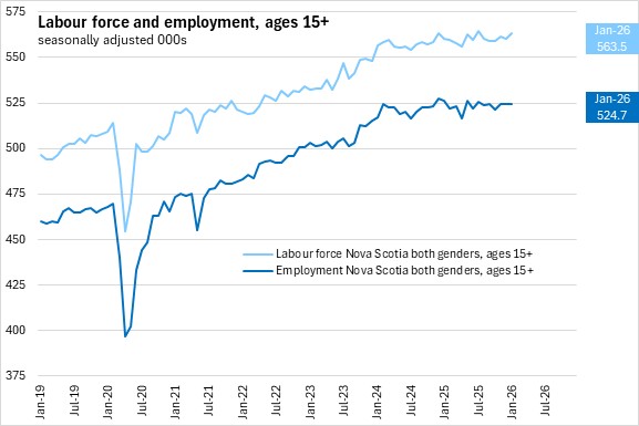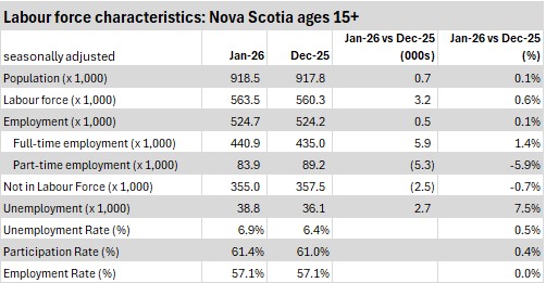 Nova Scotia’s labour force rose by 3,200 (+0.6%) to 563,500 in January 2026.