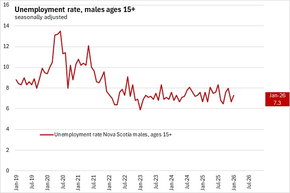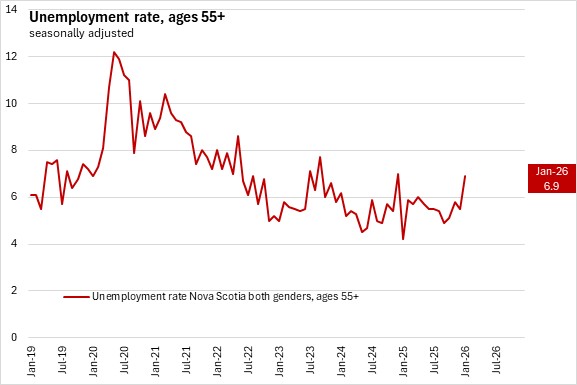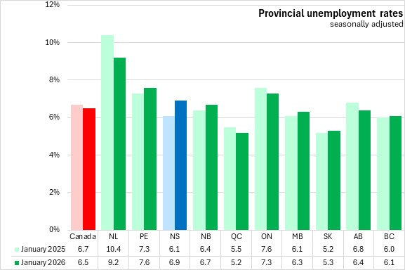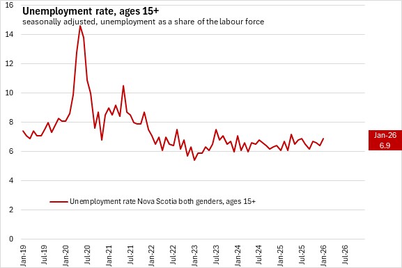 With labour force growing faster than employment, Nova Scotia's unemployment rate rose 0.5 percentage points to 6.9% in January 2026.