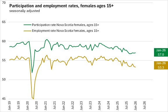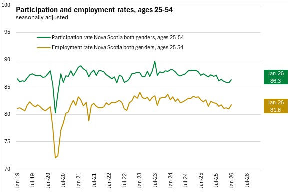 Nova Scotia's labour force participation rate increased 0.4 percentage points to 61.4% while the employment rate was unchanged at 57.1% in January.
