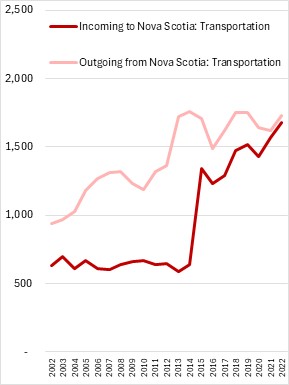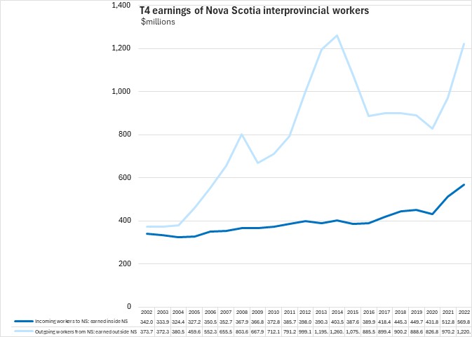 The amounts earned by Nova Scotia workers in other provinces increased to $1,220.7 million in 2022. Incoming workers earned $569.8 million for their work in Nova Scotia.