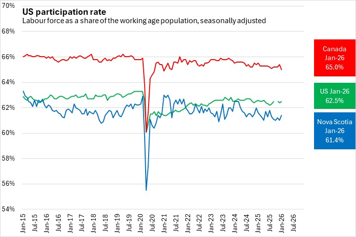 The US participation rate edged up 0.1 percentage point to 62.5% in January 2026. The US participation rate had stabilized below levels observed prior to the pandemic and has grown slightly since July 2025.