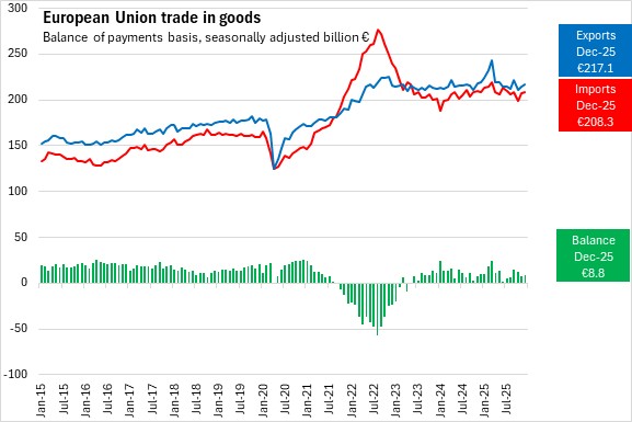 February 13, 2026EU AND EURO AREA TRADE BALANCE IN GOODS, DECEMBER 2025 Month-over-month (December 2025 vs November 2025, seasonally adjusted)