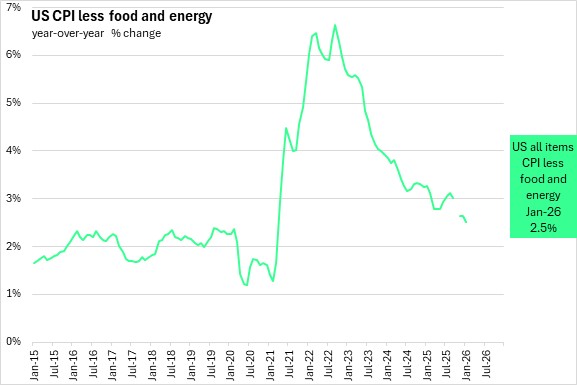 The US CPI excluding food and energy rose 2.5% compared to January 2025.