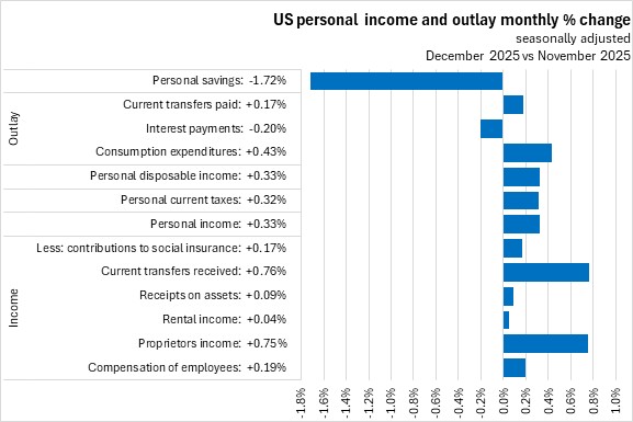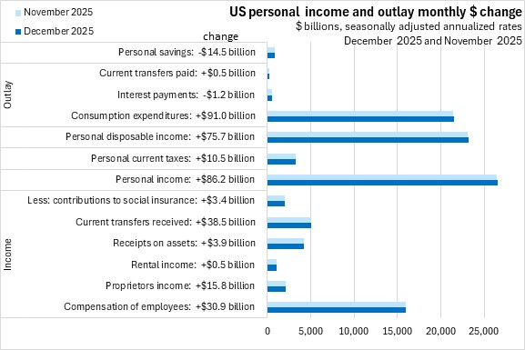 February 23, 2026US PERSONAL INCOME AND OUTLAY, DECEMBER AND ANNUAL 2025 Month over month (December 2025 vs November 2025, seasonally adjusted annualized rates)
