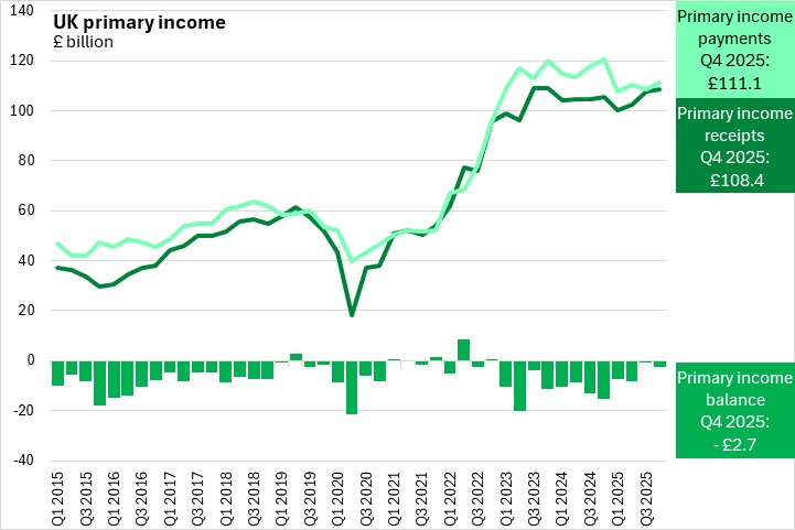 Source for National Statistics (ONS), released 31 March 2026, ONS website, statistical bulletin, Balance of payments, UK: Q4 2025; Balance of payments time series