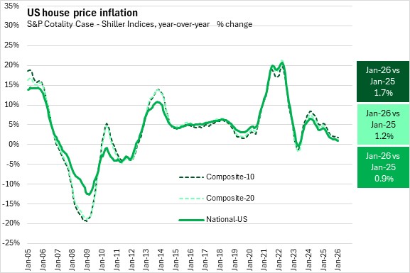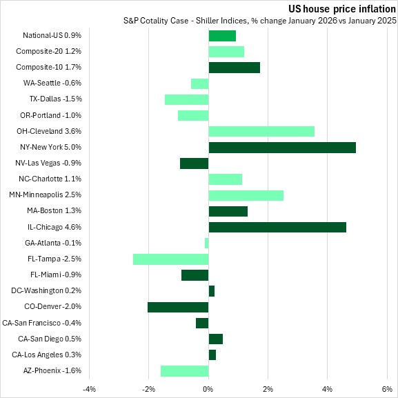 March 31, 2026US S&P COTALITY CASE-SHILLER HOME PRICE INDICES, JANUARY 2026 Month-over-month (January 2026 vs December 2025, seasonally adjusted)