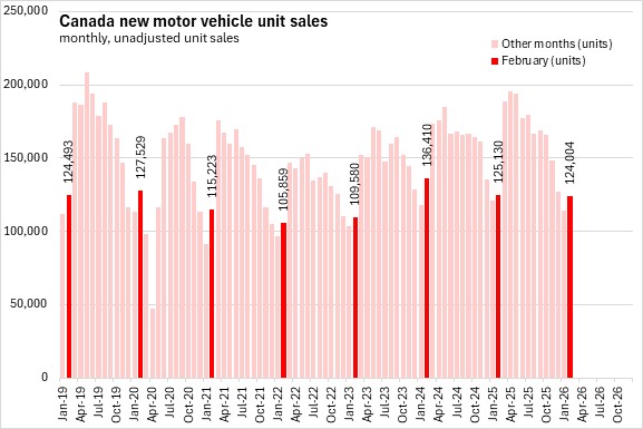 Source: Statistics Canada. Table 20-10-0001-01 New motor vehicle sales