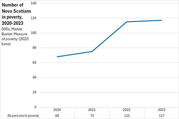 The number of Nova Scotians in poverty rose to 117,000 in 2023 - up 2,000 from the previous year (using the 2023-base for the market basket).