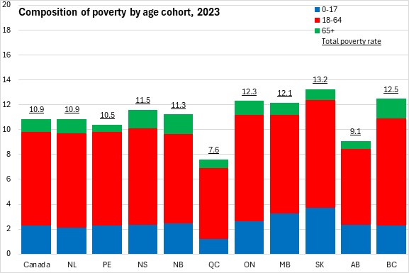 Poverty rates for those aged 18-64 increased in all provinces except Manitoba and Alberta in 2023.