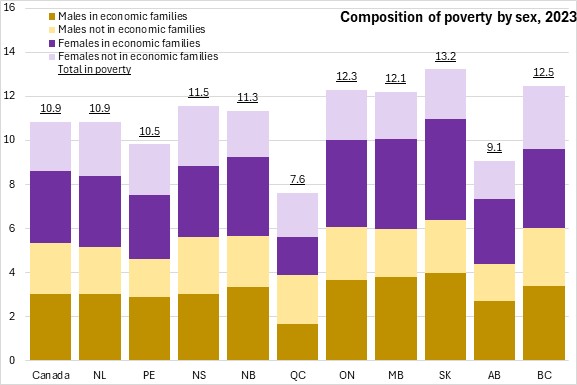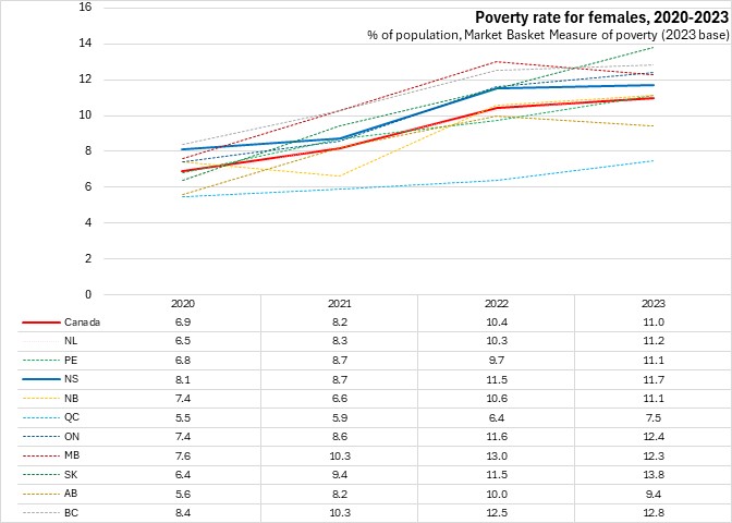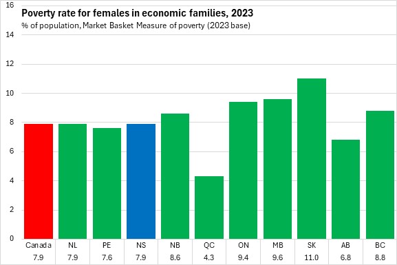 Poverty rates for females in economic families increased in eight provinces (including Nova Scotia) in 2023.