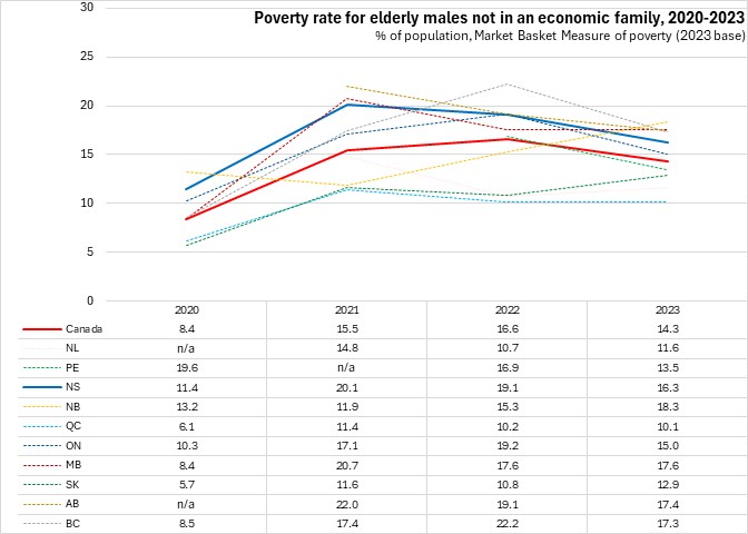 Poverty rates for males not in an economic family decreased in six provinces (including Nova Scotia).