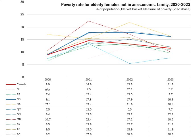Poverty rates for females not in an economic family decreased in six provinces (including Nova Scotia) in 2023.