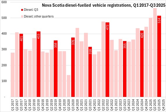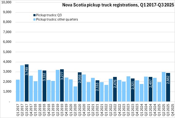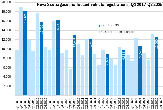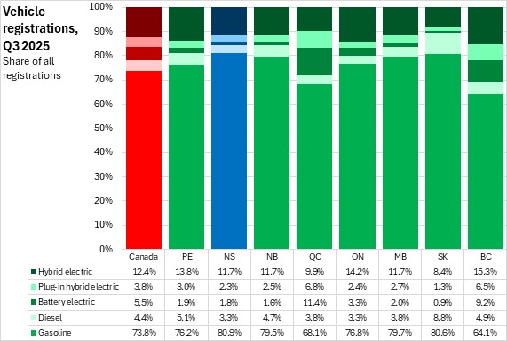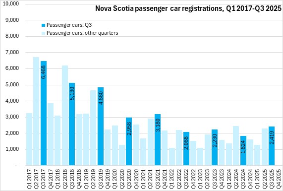 December 15, 2025NEW VEHICLE REGISTRATIONS, Q3 2025 Statistics Canada now reports Nova Scotia results for new motor vehicle registrations. Data are reported for all provinces except Newfoundland and Labrador and Alberta.