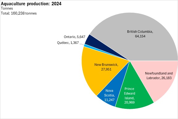 March 13, 2026AQUACULTURE, 2024-REVISED Canada's aquaculture industry produced 160,318 tonnes of finfish and shellfish products in 2024 (including restocking), with a value of $1.36 billion.