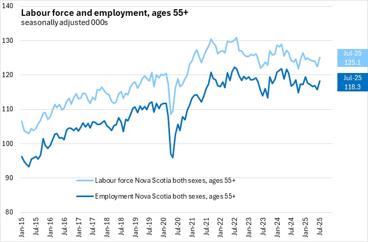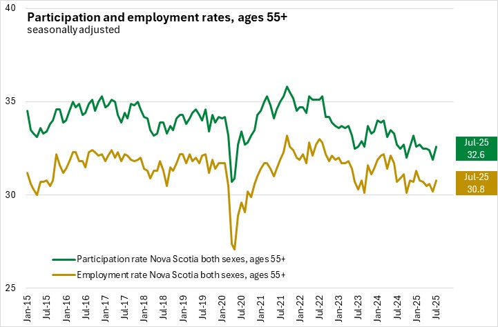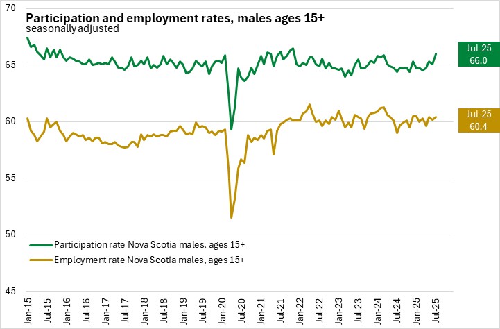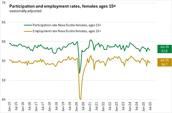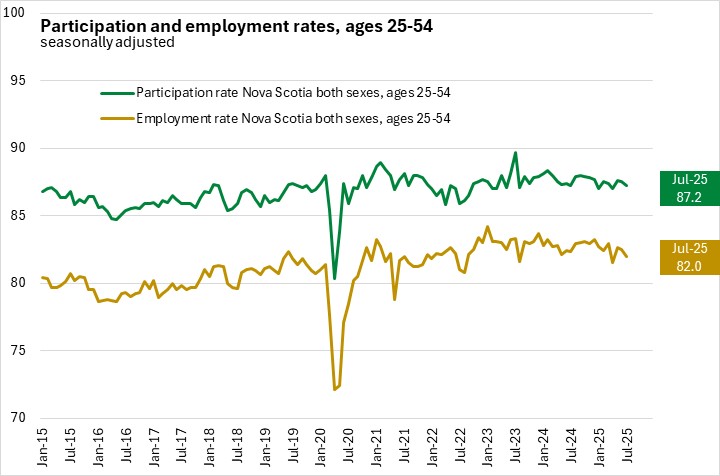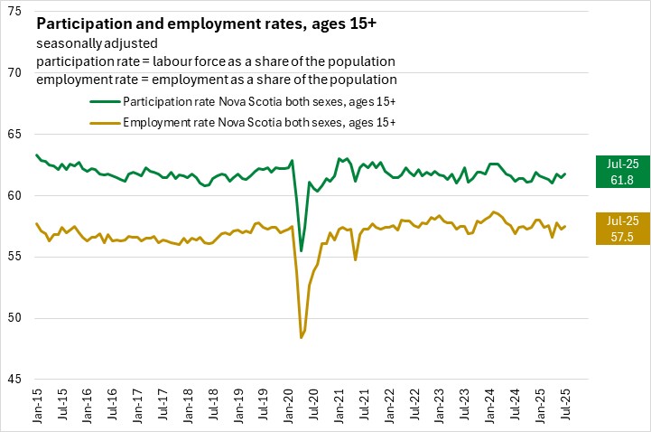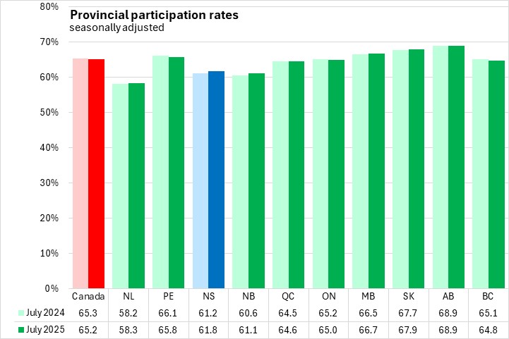 Nova Scotia's labour force participation rate rose 0.3 percentage points to 61.8% and the employment rate rose 0.2 percentage points to 57.5% in July 2025.