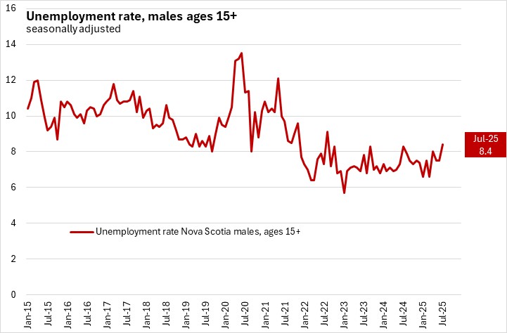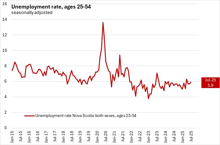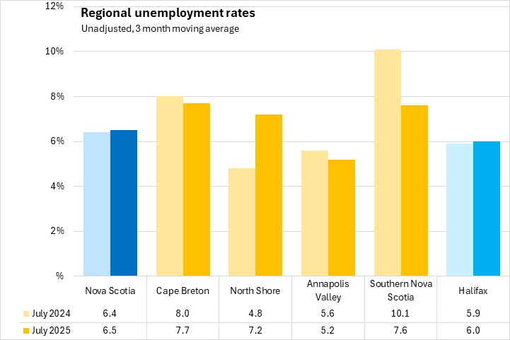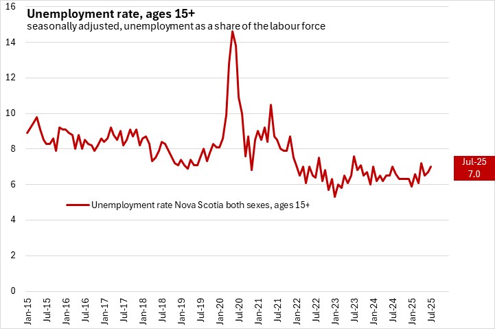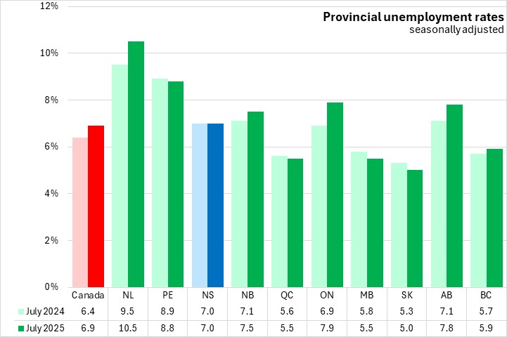 With employment rising more slowly than labour force, Nova Scotia's unemployment rate increased 0.3 percentage points to 7.0% in July 2025.