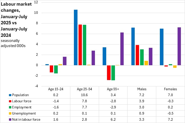 Ages 15+ (January-July 2025 vs January-July 2024, seasonally adjusted)