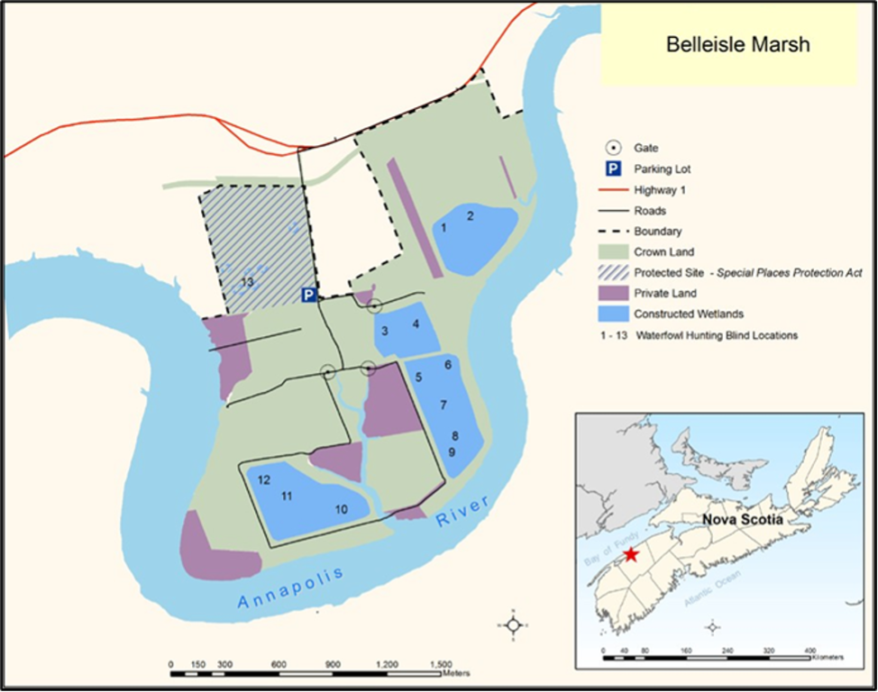 The Department of Natural Resources is currently accepting applications for permission to use waterfowl hunting blind sites at Belleisle Marsh, Annapolis County. Anyone in possession of a Nova Scotia Wildlife Resources Client Card is eligible to enter the draw for a blind site on constructed wetlands during the first 3 days of the waterfowl hunting season (1 to 3 October 2025).