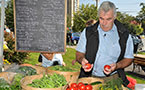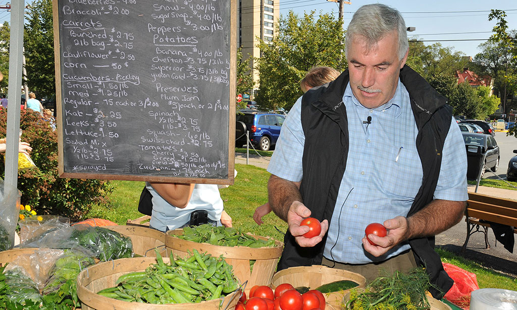Agriculture Minister John MacDonell looks over some vegetables at the farmers' market at the QEII Health Sciences Centre during the Eat Atlantic challenge. Download high-res version