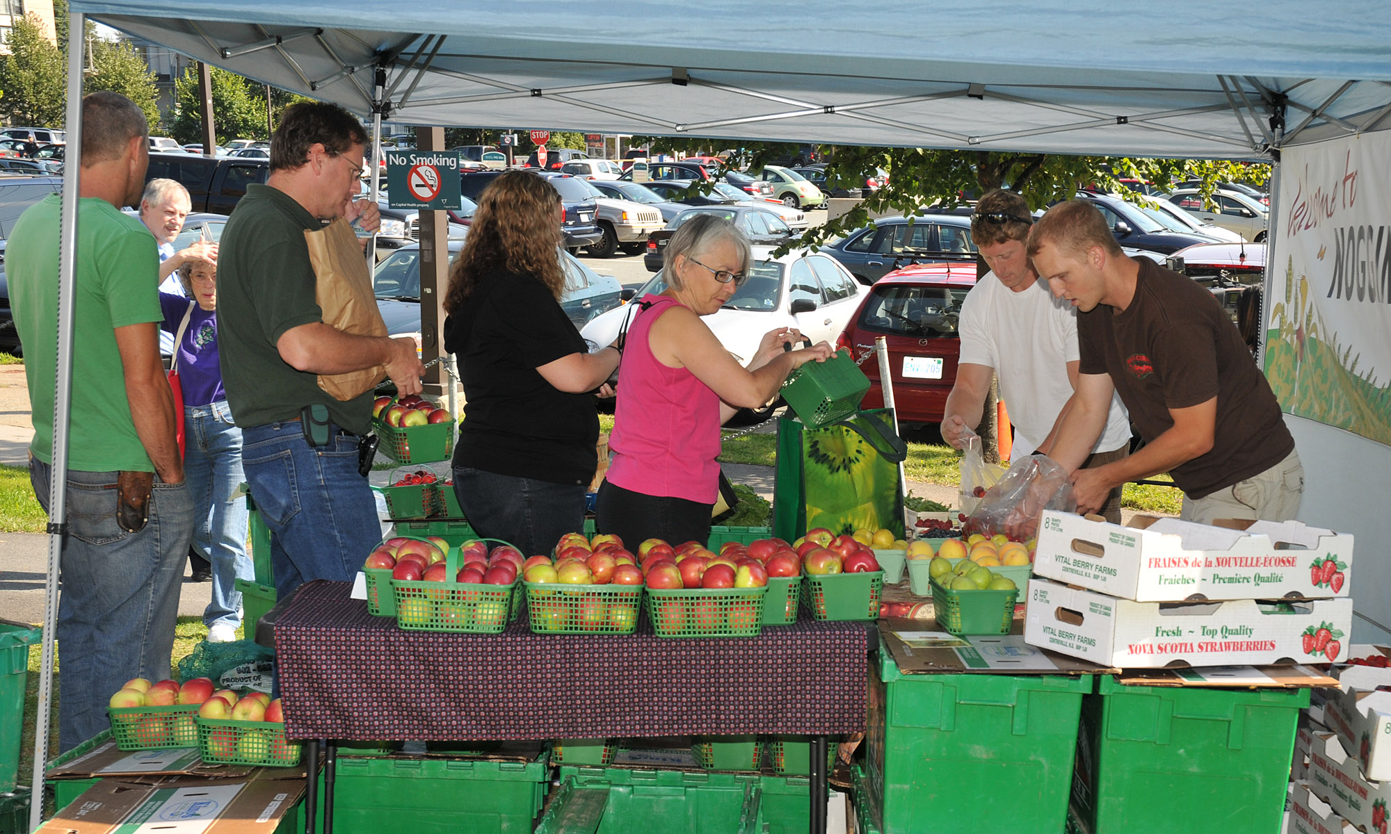 Customers line up to buy apples at the farmers' market at the QEII Health Sciences Centre. Download high-res version