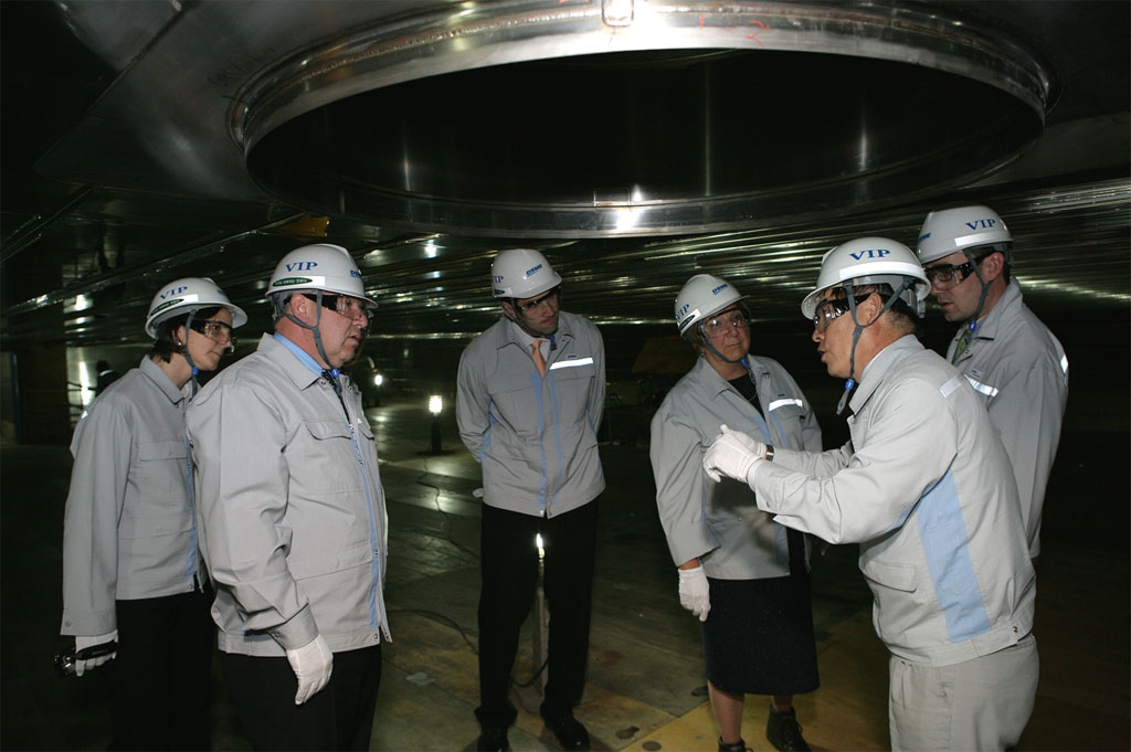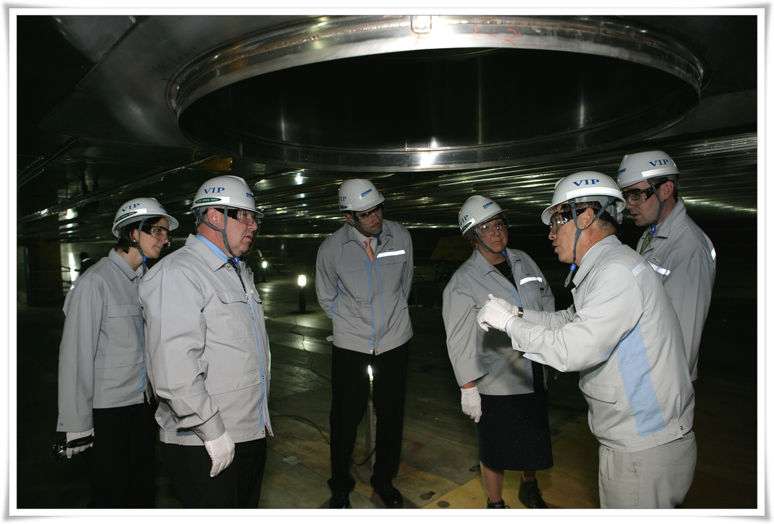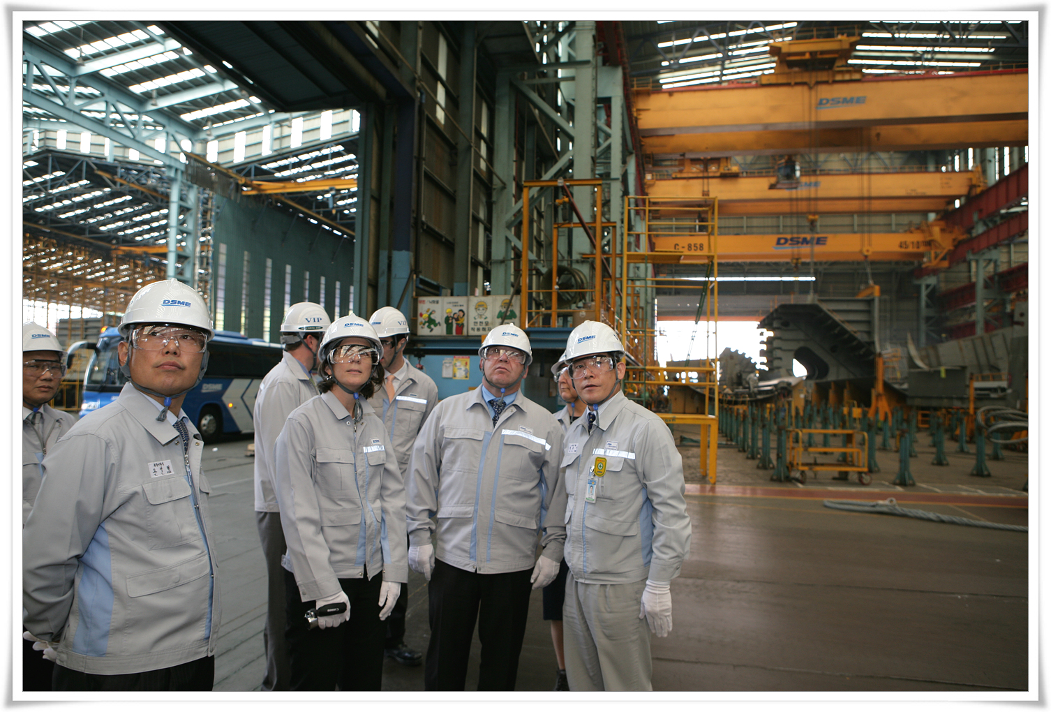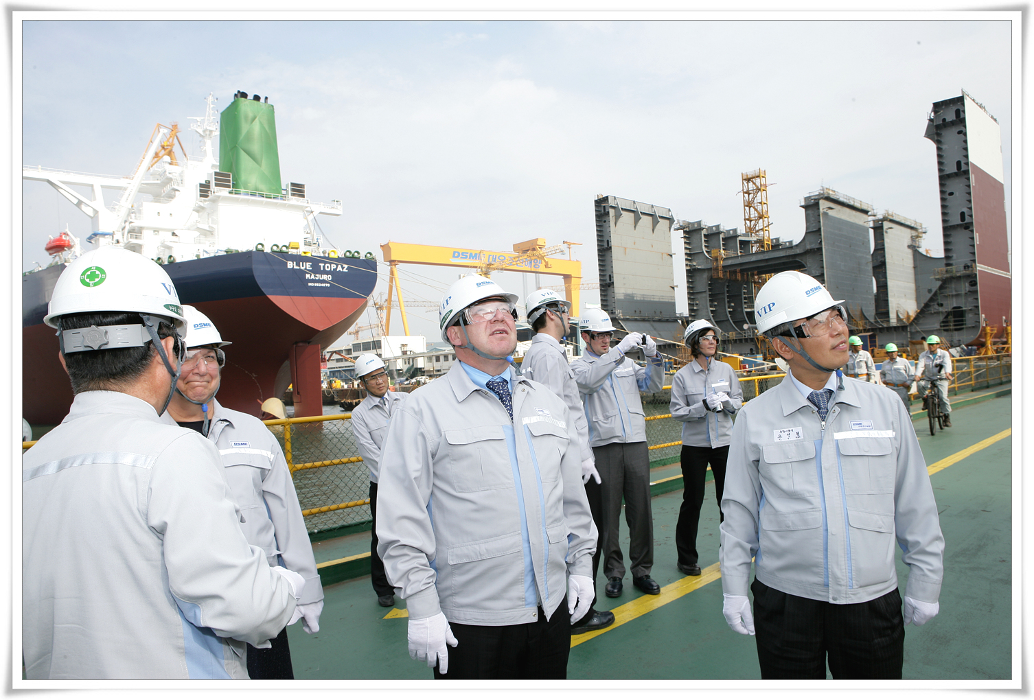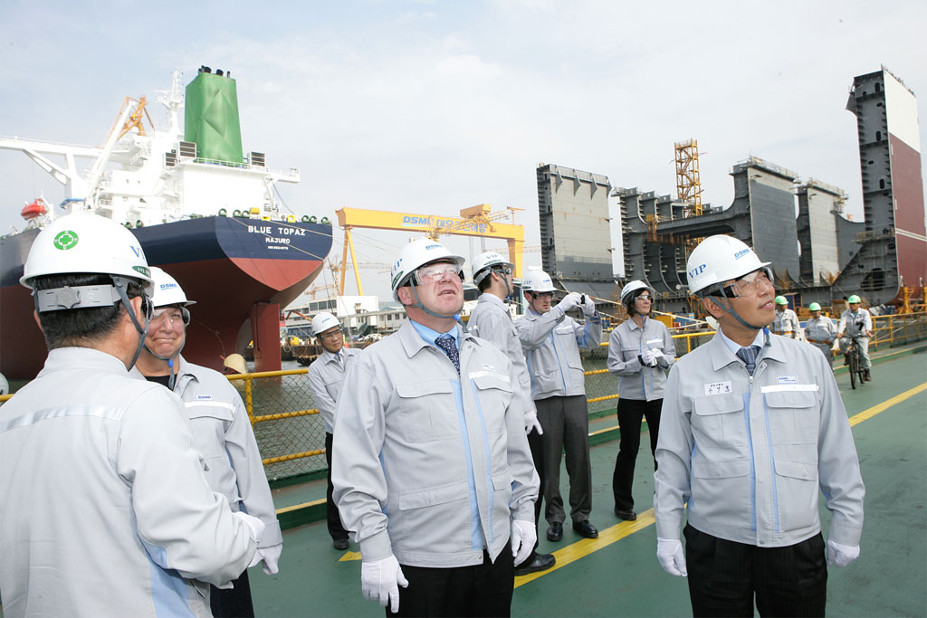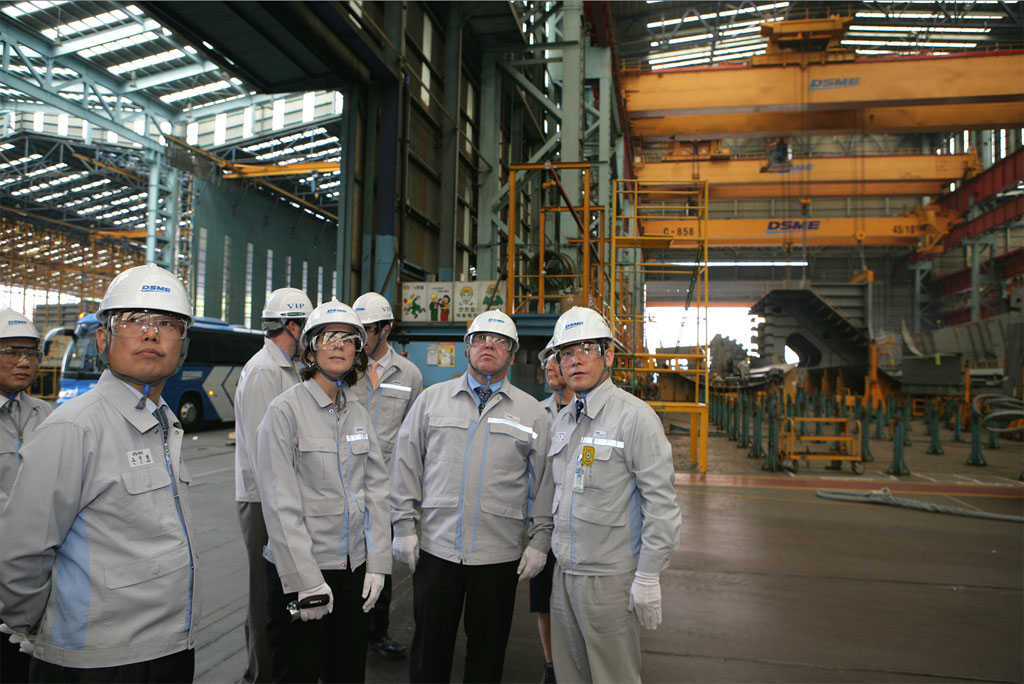 Premier Dexter with DSME Chief Strategy Officer, Mr. Young-Youl Koh, examining the world's largest dry dock facility (off camera).