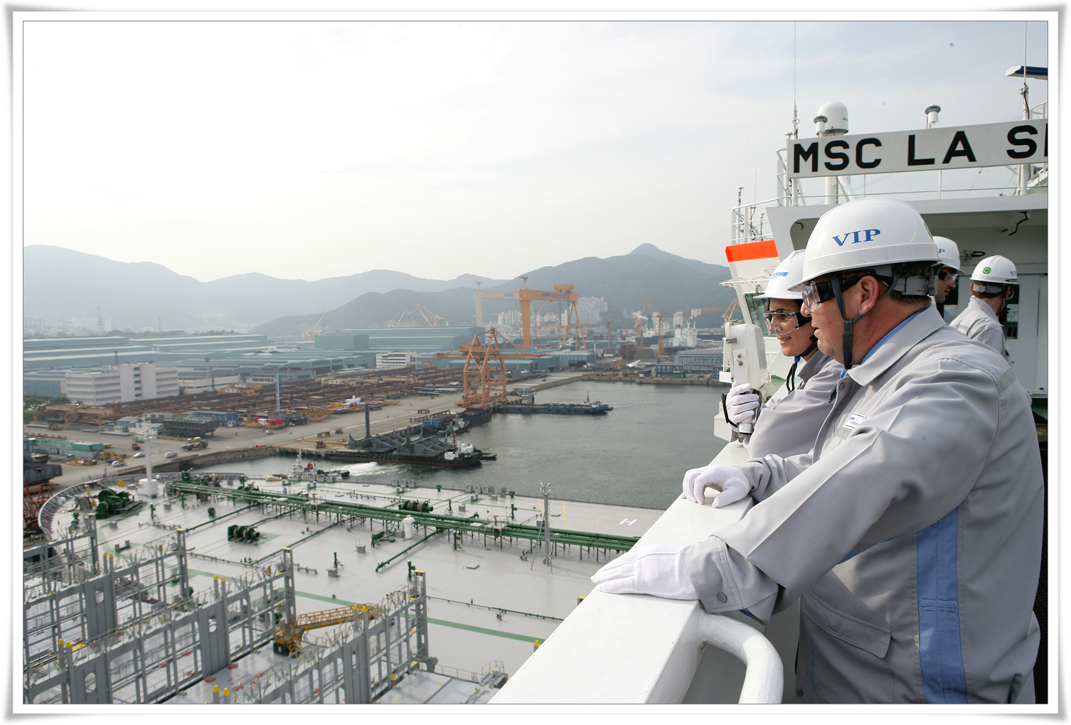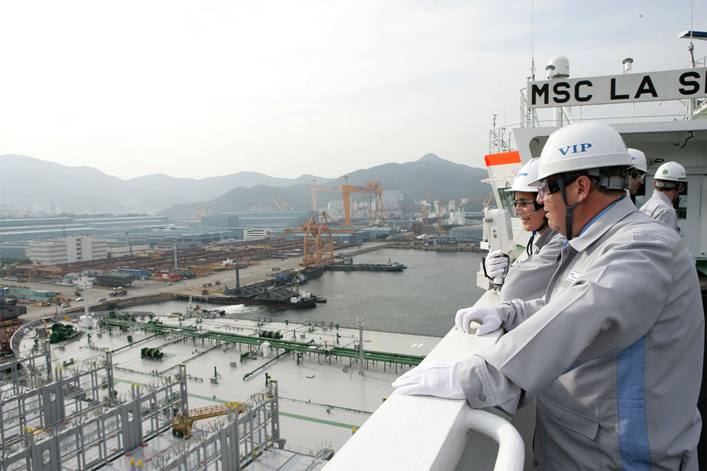 Viewing the 14,000 TEU container ship (largest in the world) as it is readied for delivery to client.