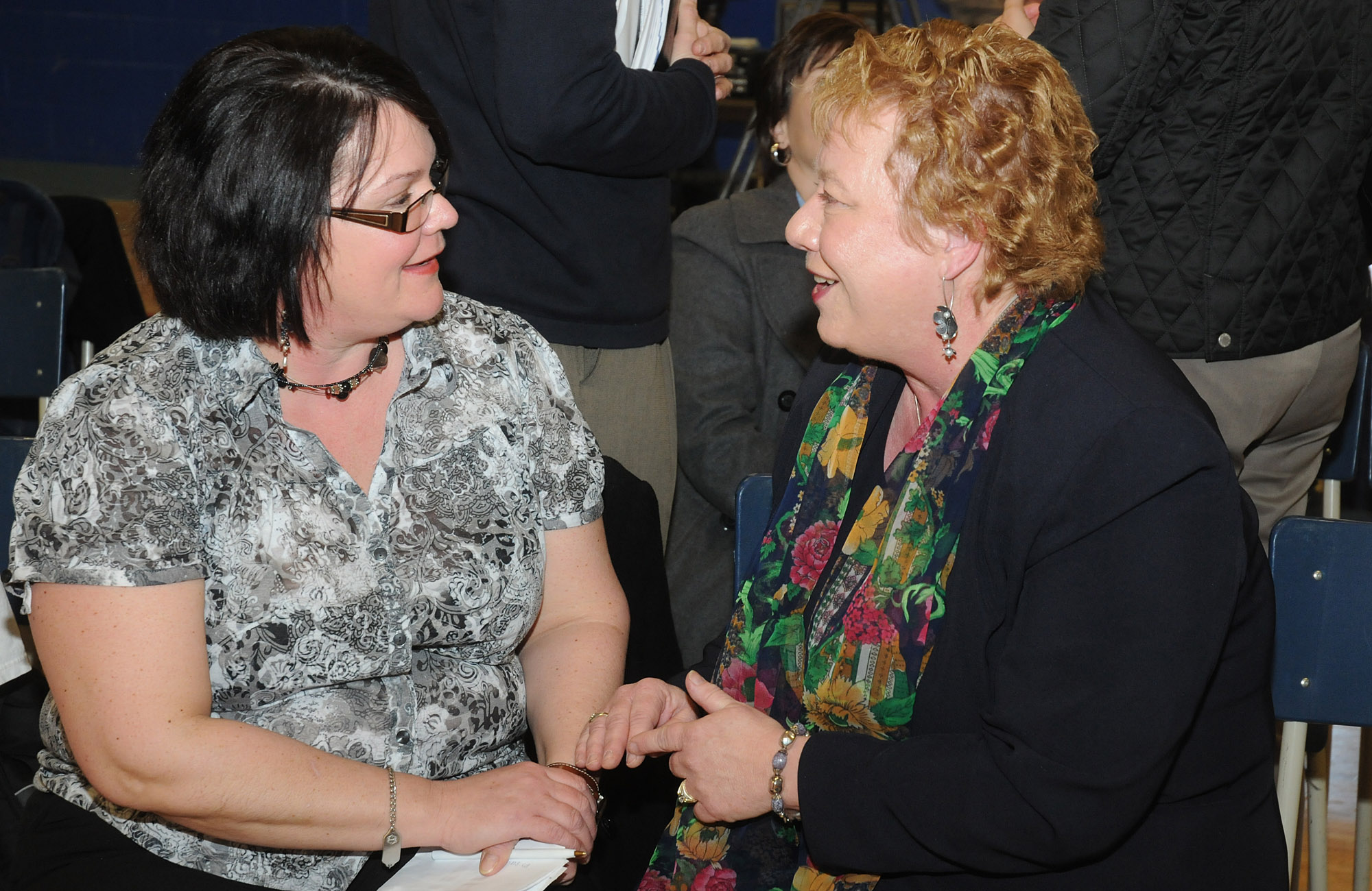 Paula LeBlanc with Community Services Minister Denise Peterson-Rafuse about the province investing more than $18-million to help low-income families.