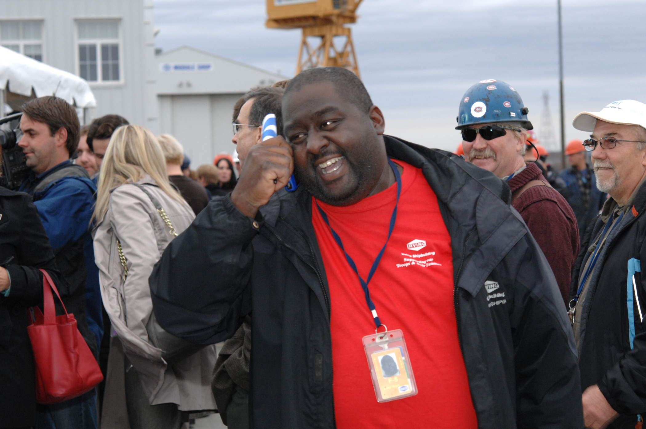 Jemar Beals is all smiles after the announcement that Irving Shipbuilding won the $25-billion contract to build Canada's next generation of combat ships.