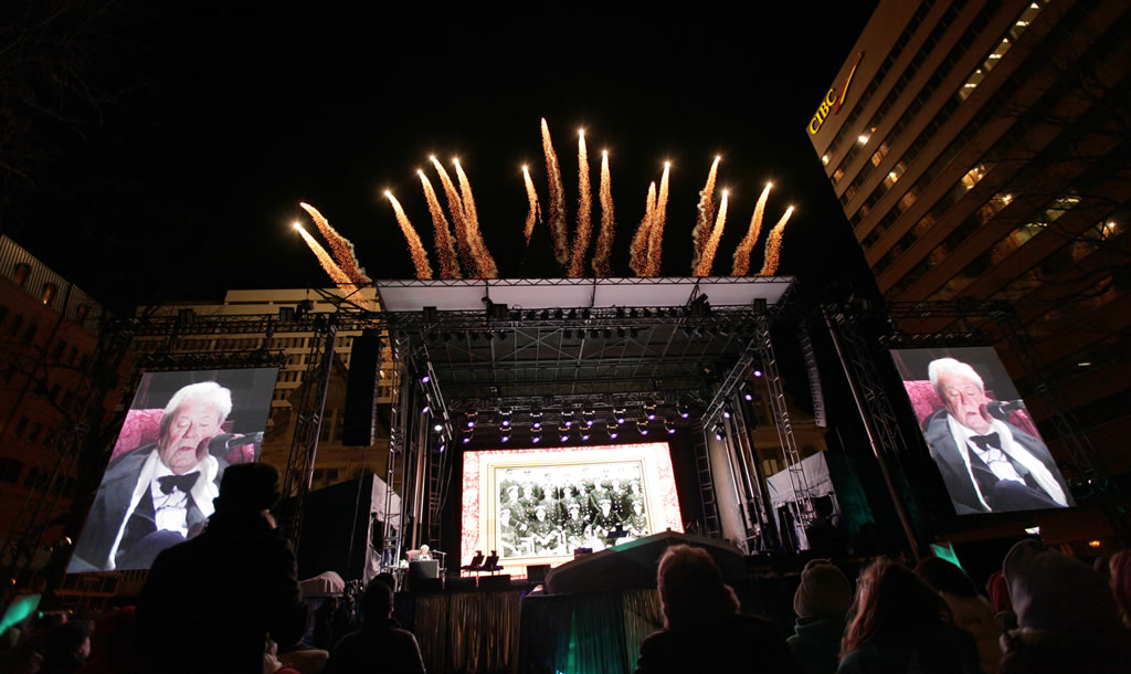 The stage with flares firing at Titanic Eve - Night of the Bells, which told the story of Titanic, its passengers and crew, and the role of Halifax in the recovery operations.