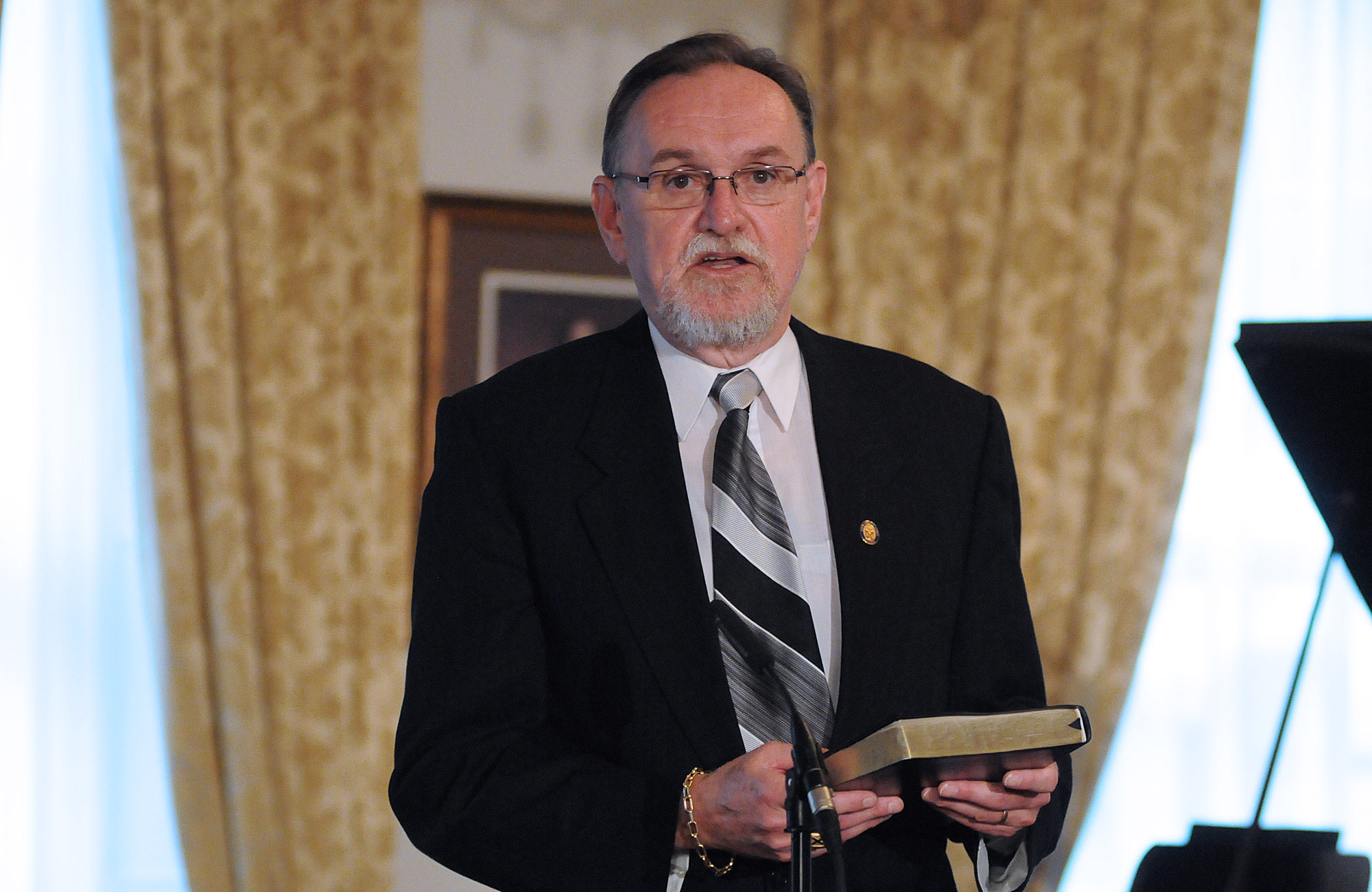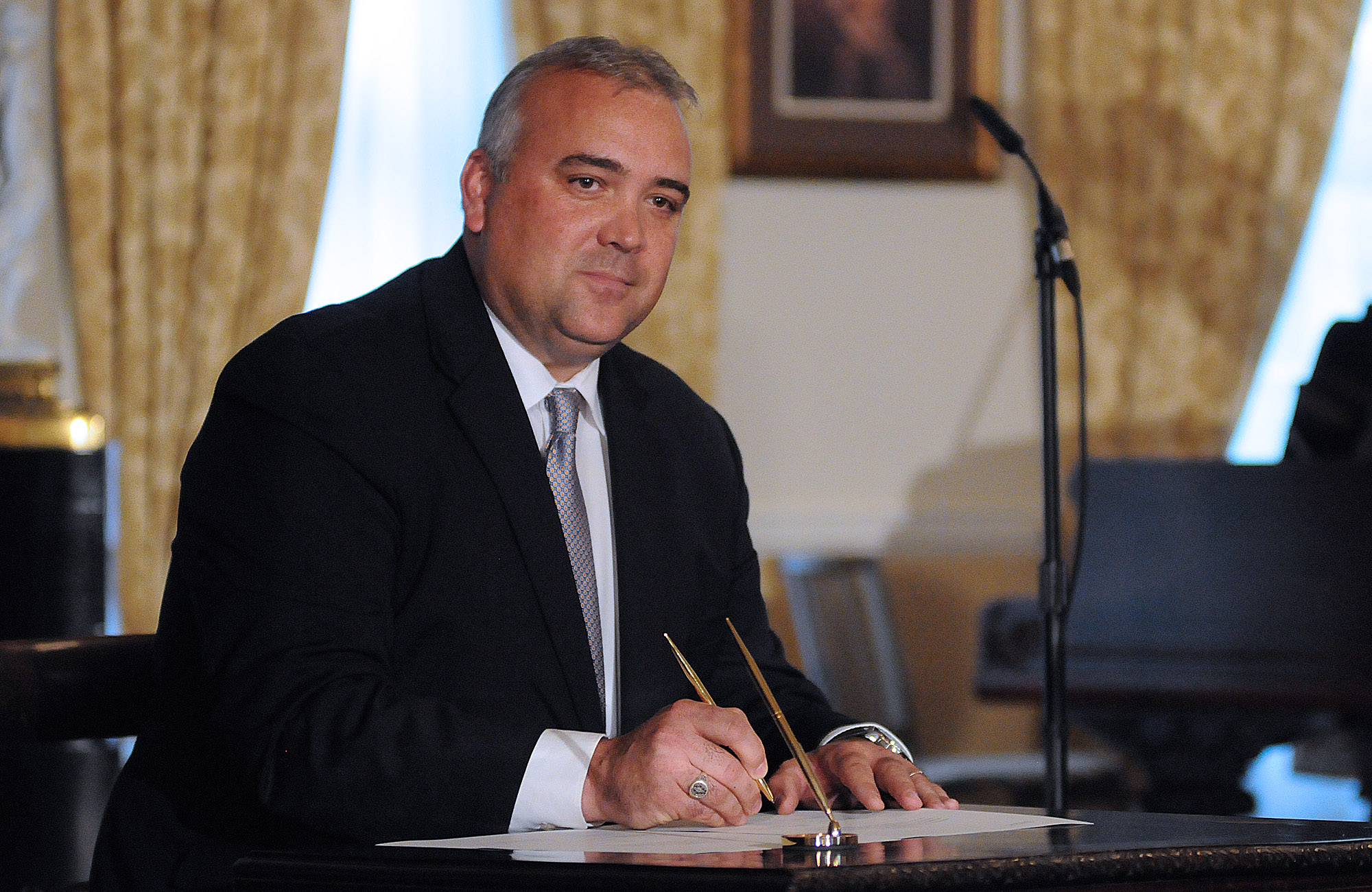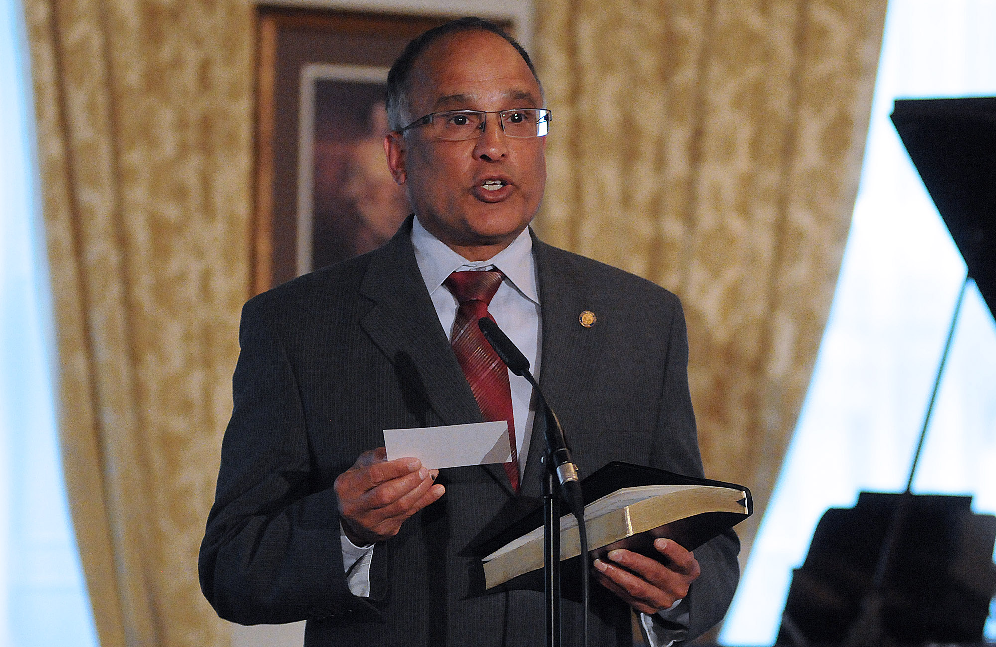 Leonard Preyra, the new the Minister of Communities, Culture and Heritage, takes his oath of office.